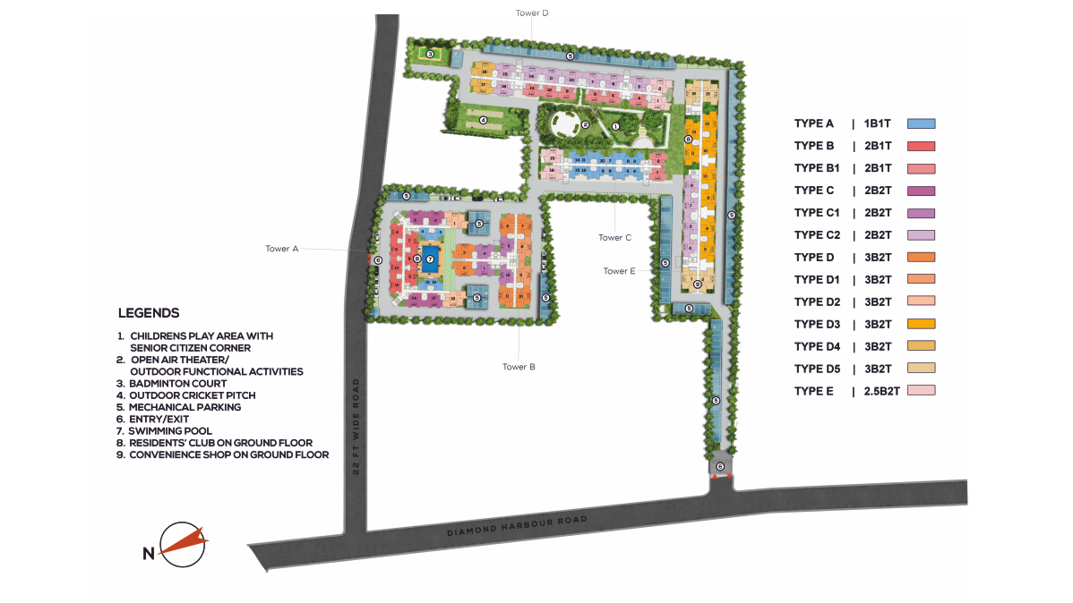 Lifestyle Other Amenities Outdoor Facilities Senior sitting area Amphitheatre Jogging tracks Seating Enclosures (Cabanas) Lawn Functional Facilities Rooftop community space Outdoor functional activities Residents' club Visitors' Parking Common Toilet for Maintenance Staff Play Areas Cricket Pitch Badminton Court Childrens' play area Central Green Area Indoor Activity Centre Swimming Pool Multipurpose Gym Table Tennis Pool & Chess Tables Changing Room with Shower Conveniences 24x7 Power Backup 24x7 Security Guards CCTV Cameras Passenger Lift Shops for Daily Household Needs Waste Management Water Treatment Plant Sewage Treatment Plant Rainwater Harvesting Organic Waste Compactor